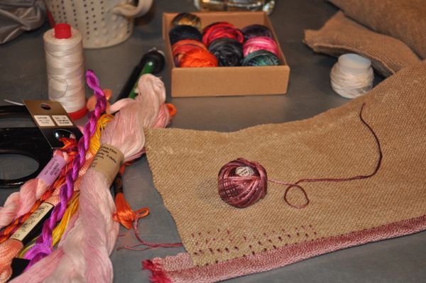 I had to stare at the photo this morning as I drank my coffee. The magpie wanted to play in the sparkly threads – oh so beautiful. I have a new found love of linen. I love its strength, texture, and weave. I have been pondering the sew-plies bag as I plant pretties in the yard. I will work on one this weekend.