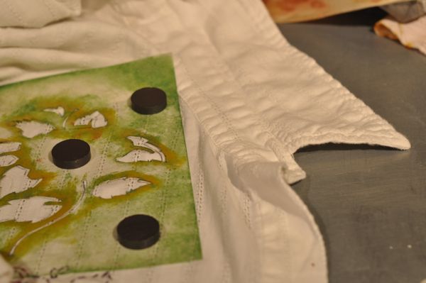 And I am using a multicolor stencil to embroider a rose design up over the right breast pockets, around the back yoke, and perhaps a few sprigs draping down the left shoulder seam, I don’t know yet.