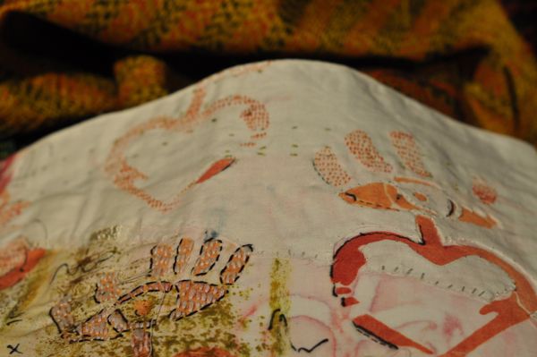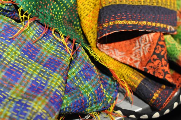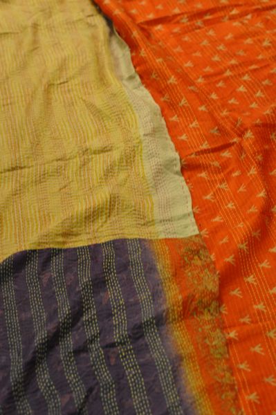 This is our newest throw. Made of silk saris sew together by women in India. I am sewing two together as a throw for David and I and a few friends.