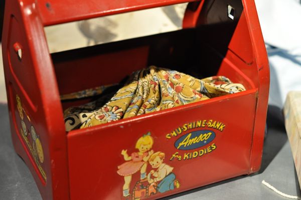 1. Where did you find the sari throws? (I said in a voice loud enough to be heard in Brooklyn!) Gorgeous, yummy, and I know it would feel delicious. Speaking of delicious, does the soda have an orange taste? I will look for it when we are in the big city. I had potato chips this week, too. Salty, crispy, nummers. The sew-plies bag is wonderful. I want to paint you eye-heart motif on my garden shed. I love the chest!!!!!! You can use it for so many things. I am always looking for old tool boxes and baskets that I can use to carry items as I move around the house. I decided yesterday that I wanted grandchildren. A little late in life to decide this! At an estate sale, I saw the cutest folding card table and chairs for kids. White frame and cherry red faux leather top and seats. If I could train the cats to sit on it, it would have come home with me. So sorry about the computer woes. Perhaps Rice can send your computer a voodoo doll or magic stick to cleanse the computer of all the bad juju?