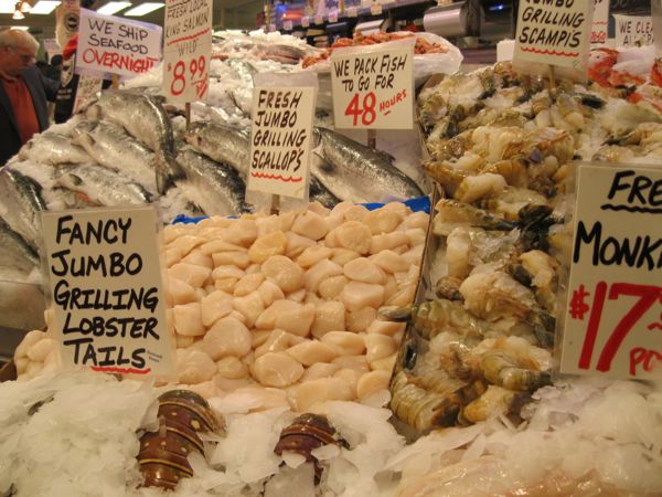 I am so happy to experience open air markets like Pike Place Market in the U.S.! All this hermetically sealed food in plastic wrap? Does it have to be this way? Gosh. When we were in Barcelona we explored a market where a butcher had a cutting block that had been hit so many times it was severely concave, it was impressive. I know. Germs. Phobia. But you know? We humans seem to stick around!