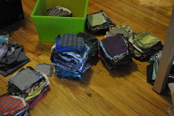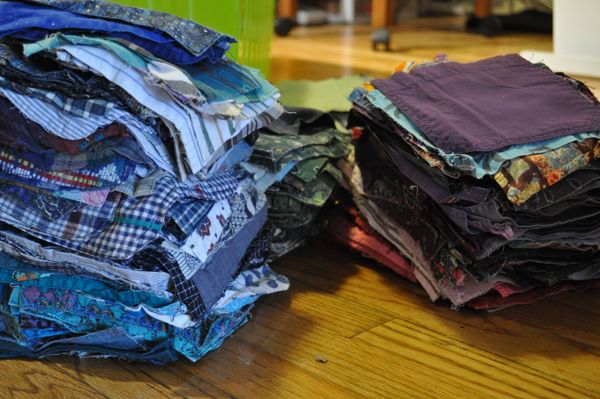 The two boxes are so jam packed, the pockets ‘stick’ together. They are also somewhat loosely arranged by color! I have not counted them. I love them though. I love that cloth has memory. The seam allowances remain turned back, there are snippets of thread left where the pockets were ripped from their original home. They become ‘documents’ (information or evidence that serves as an official record). And they each have personality, funky, wild, subdued, loud, quiet prints.
