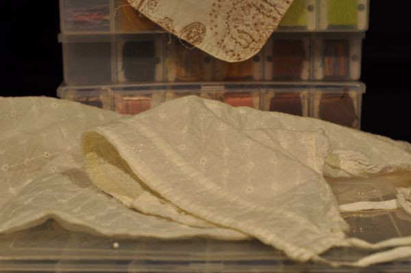 I have been conversing about cloth, it is a personal, ever growing and ongoing discussion, really. I have this ‘metallic’ white cotton, I bought it ten years ago, I don’t know its name. (Do you??)