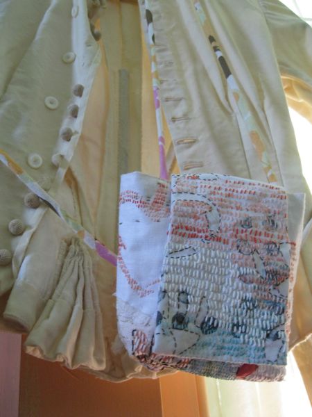 And sometimes I include fancy bits of fabric in the lining. I have also been known to clip rounded bits of plastic from milk bottles and juice containers to tuck into the scissor pocket-which protects the fabric from being punctured by my embroidery scissors.