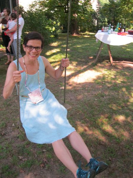 4. I am laughing so hard! I wish I had a camera set up when I started watching the video. Ms. Kitty suddenly went from my lap to the laptop and had her nose against the screen when Peach made her debute. LOL!!! She looked behind the computer and was trying to find Peach. Anyway, I’m in. I’ve made a couple of the original Sew-plies. I even made one for Carl to keep in his car for when he looses a button on a trip. I love the photo of you on the swing!!! I need/want/covet a swing! Your new do is pretty cool, too. Sending love. xoxo