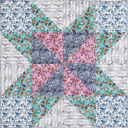 The original name of this quilt is “Lark Star” for the Eastern Meadowlark on the list. For publishing reasons, the piece goes by the name “Starling” in the magazine. They are offering a FREE alternate pattern of the quilt in king size! (You can also order a kit of the 60.5″60.5″ from them, that has the fabrics I used!)