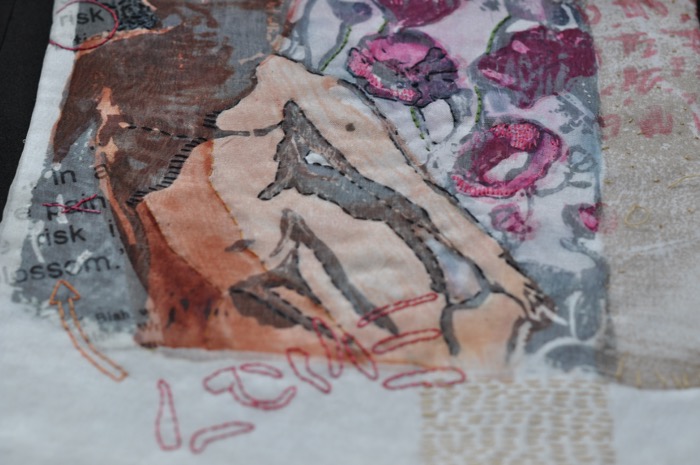 Printed Cotton, Procion MX dye, Batting, Machine and Hand Stitch
