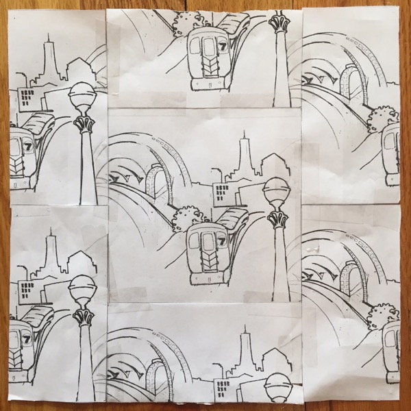 I recently came across Printed Village, (did you know about it? And if so, why have you been holding back on me?) And? Of course, I have decided to partipate in one of their challenges. This site offers ‘story boards’ and deadlines for a surface design artists to create work on a theme, with prizes. Reread that last sentence. What more could a girl ask for? I have been wanting to design around the theme of NYC since I began Free Range Textile Printing, last summer. The theme of this challenge is specifically asking for artwork on the theme of the New York City Subway.