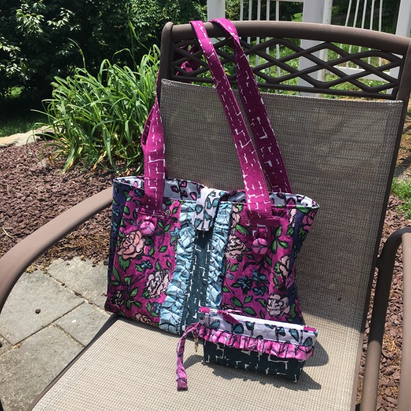 Florabunda! is an exciting collection of prints and not to mention beautiful, vibrant colors. I chose to design a one of a kind handbag and coordinating makeup bag. I used 8 different fabrics and all are represented in the handbag.I added a small makeup bag that not only can be worn as a wristlet on its own, but has a metal clip to attach it to the inside of the handbag. My favorite print is the large floral print with the pink background, which I used as the main fabric for the handbag. Thank you to Melanie for this amazing opportunity and a chance to really push my creativeness.