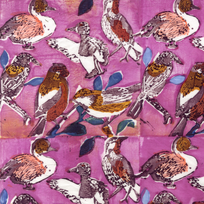 Meadowlark is both quirky and ingeniously primitive, each print harkens back the look of block printing while offering a strikingly original modern aesthetic. Iconic motifs like birds, fruit, chairs and high heeled shoes are paired with polka dots, grids and vines in a saturated and vibrant mix of color. Meadowlark is as playfully imaginative as its designer. Meadowlark is Melanie’s premier collection with Windham Fabrics, available May 2014.
