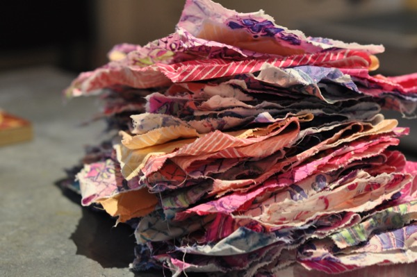 Here is a pile of ready to iron handprints. They look like potato chips to me. They act like it too. I am so excited to make a new quilt top, I could eat these like potato chips! If only they tasted as good.