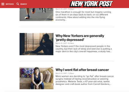 Today, an article about my breast cancer journey appeared in the New York Post. The hard copy version is named Flat-Out Fabulous, which is, of course, my preferred headline. 🙂