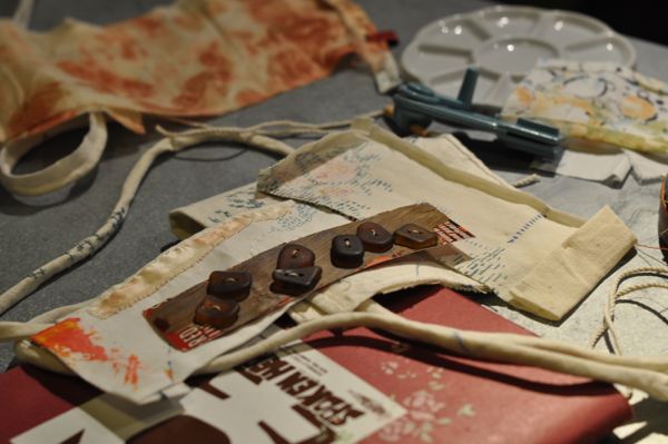 Page 112: The little wooden sewing machine was made for me by my friend Jod, the Snape ring to the right of it was made by my friend Shanna. The pinecones were sent to me as stuffing in a package.