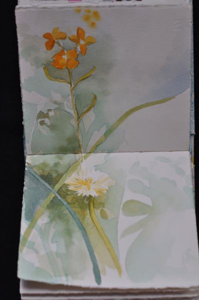 While drawing the orange flower I was bit by a nasty bug and am still healing from it!