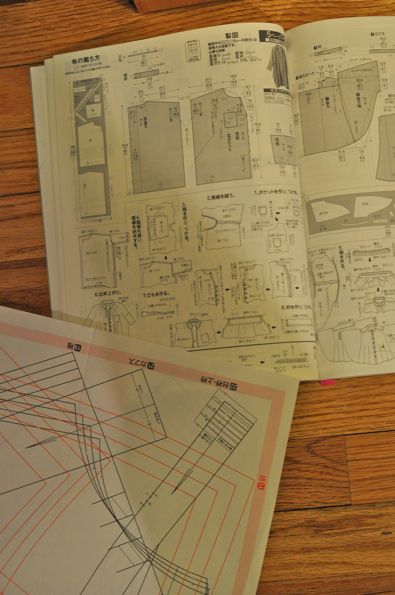 So, I posted to facebook my pure joy at finding a Japanese Pattern Book and wanting to sew from it. Cricket piped up that Masako might be able to help me interpret the pattern book! Um, excitement. Masako speaks and I presume writes in Japanese. I have lots of questions and we have made a date! And just so you have it, and if you want to purchase it and sew…along…with me, here is the link to the pattern. You will also need the magazine, which gives full illustrations of how to approach sewing the garment together. You can just purchase the magazine, though. It has a full sized pattern tucked into the back (mashed up with all the other patterns in the magazine). You will just need to trace it off, add seam allowances and then start cutting.