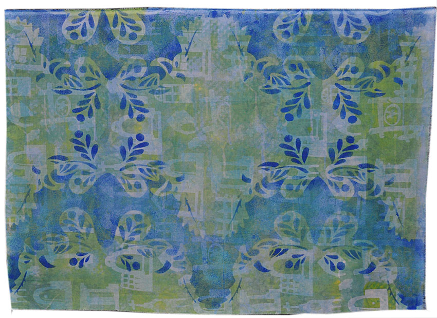 Monoprint using Procion MX Dye, Drawn, Freezer Paper Stencil -