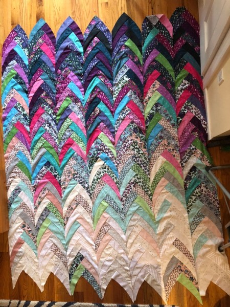 The other nice thing about this quilt top, is that you don’t need a design wall to do it. I designed and sewed just one segment at a time. using the floor of my tiny apartment, to help.
