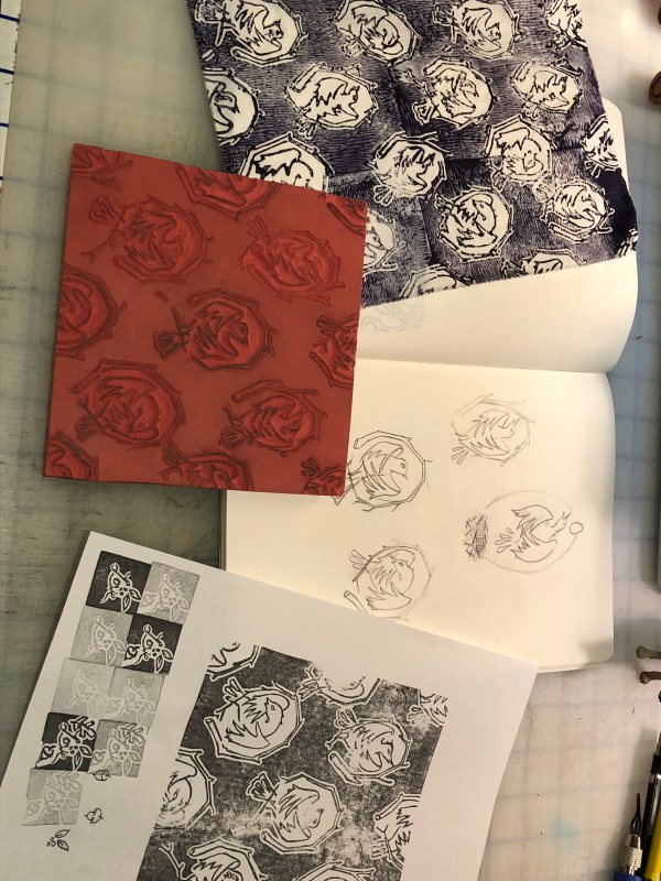 This week, I finished steaming and washing the Buta prints. Then, I went and bought a magnifying glass, which makes me want to design and carve! This is a perfect opportunity for me. It means I can cut and piece a new quilt top, but also design and start thinking about my next my next print job.