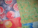 We will use the soy wax to create batik like effects on cloth-texture, line and beautiful bits of trapped and resisted color are central to this medium. When using soy wax with monoprinting in thickened Procion MX dyes, the possibilities grow exponentially. Soy wax, an ecologically safe, food grade wax, unlike paraffin it can be washed safely and completely out of cloth in your home washing machine, no harsh chemicals are needed!