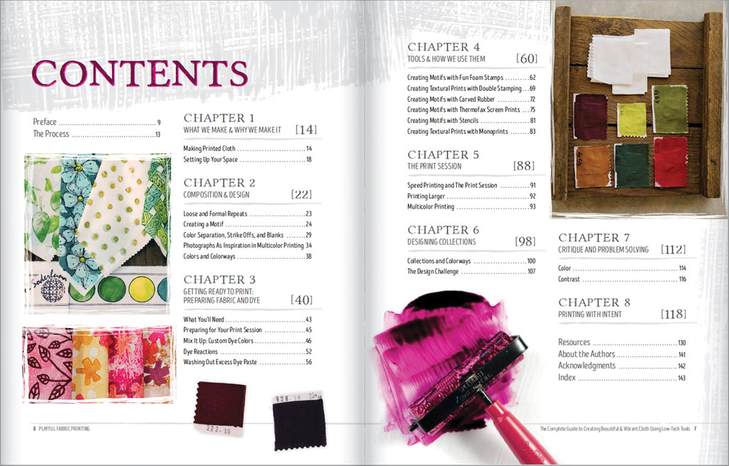 With step by step advice, instruction, and photographs, this book is a master class in using dyes and low-tech equipment to print your own fabric, and it begins at the beginning. If you’ve never handled dyes before, never designed your own print motifs, aren’t even sure what supplies or space you might need, everything you want to know is here. More advanced students will value the in-depth presentation of techniques, tools, and insights into approaching fabric printing as an art and taking your work to the next level.
